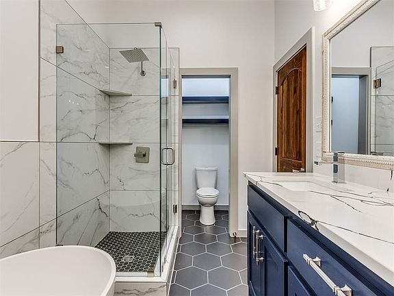 Modern charm meets historic neighborhood vibes! This beautifully remodeled home near the Plaza District boasts bold curb appeal, custom wood accents, and a covered front entry. Step inside to soaring ceilings, a show-stopping chevron wood accent wall, and sleek tile floors throughout. The kitchen is a true standout with a farmhouse sink, pot filler, two-tone cabinets, quartz counters, and designer lighting. Every detail was carefully curated to offer style and function in a compact, efficient layout. Don’t miss this one-of-a-kind home minutes from Midtown, Classen Curve, and OKC's best dining and entertainment!