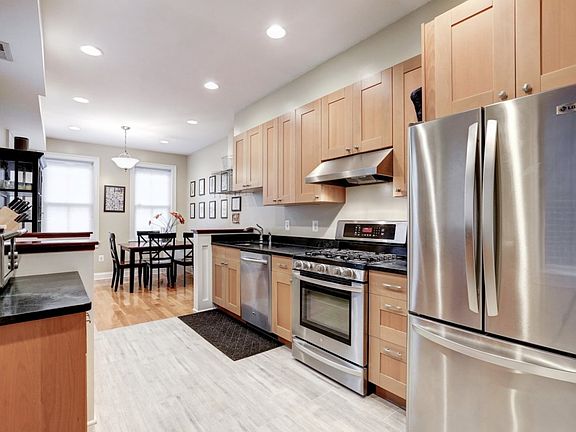 Welcome home to this beautiful, historic row-home with separate rental unit...a rare find! Recently renovated throughout, this house has it all! White oak hardwood flooring throughout brings you to a spacious living room with cozy fireplace, high ceilings, & recessed lighting. Downstairs also includes a half bath, and bright gourmet kitchen with large dining area. Upgrades include soapstone countertops, gas cooking, & all stainless steel appliances. Walk out to a spacious terrace and yard, perfect for outdoor entertaining. Upstairs features bright sky lights, a master bedroom & en-suite with modern finishes. Laundry area, bonus alcove, and second bedroom and full bath. Spacious 1 bedroom rental with a full kitchen, and combined living/dining downstairs...legal rental unit! Expansive private rear patio & gated 2 car parking, plus extra storage. Just blocks from 2 Metros! Welcome Home!