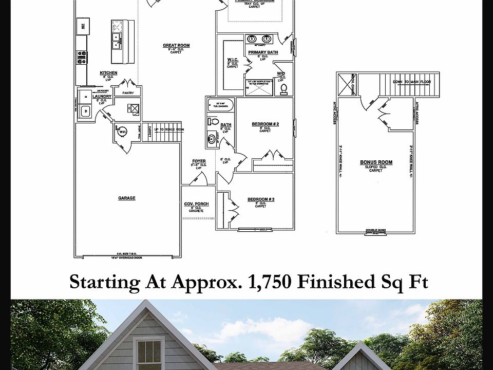 This 3 Bed/2 Bath home features a covered front porch, foyer, first floor laundry room with a pocket door, and spacious great room that walks out to back partially covered patio! The eat-in kitchen offers stainless steel appliances, granite countertops, pantry, and a cozy breakfast nook. The primary suite offers an elegant trey ceiling, spacious walk-in closet, and en-suite bath with double vanity, water closet, and large walk-in shower. The second floor features a large bonus room that could serve as an additional bedroom, playroom, or office.*NEW FLOOR PLAN! Pictures will be updated as construction progress.**Floor plans and exterior details subject to change. Our online floor plans and renderings are only intended to give a general indication of the proposed layout and amenities.*