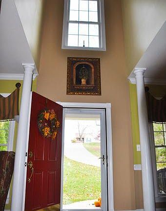 NEW PRICE and $5 k seller contribution! Beautiful 10 yr.old home on a peaceful panhandle lot, open fl.plan, soaring cathedral ceiling in family rm with fp adjoining gourmet kit. Lovely deck overlooking lawn & woodlands. LR,DR and Den, curving open stairs to balcony overlooking family rm. Huge Mster bdrm and bath,2 walkin closets,3 more bdrms and bath. Huge walkout basement. Hampton Elem School.