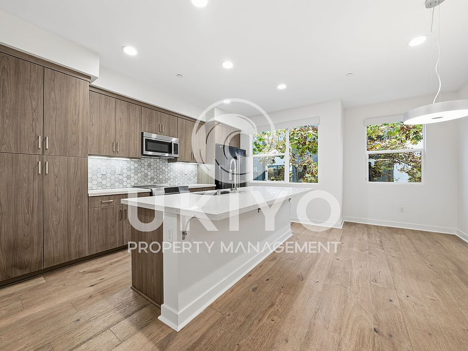 Experience modern urban living at its finest in this stylish three-story townhouse at 1518 Pullman Way in Oakland's vibrant Prescott neighborhood. Built in 2017 and offering approximately 1,644 sq. ft., this home features 2 bedrooms, 2.5 bathrooms, and a private attached garage. The bright, open-concept main level is perfect for entertaining, while the top floor offers two spacious ensuite bedrooms for maximum comfort and privacy. This home is enhanced with thoughtful upgrades throughout, including Hue smart lighting in the garden, dining room chandelier, and the primary bedroom chandelier. You'll also enjoy modern convenience with a Nest doorbell and Nest thermostat already installed. The HOA provides exceptional coverageincluding landscaping, pest control, exterior window cleaning, and solar panel cleaningoffering a truly low-maintenance lifestyle. The location is unmatched: walking distance to West Oakland BART, making SF and the East Bay easily accessible. You're minutes from major highways and conveniently close to Target, Home Depot, Michael's, Best Buy, and the bike trail that leads directly to Treasure Island. Prescott Market is a local favorite just steps away, and the Sunday Farmers' Market is a beloved neighborhood staple, perfect for weekly groceries and fresh local finds. With modern amenities, smart-home features, and an unbeatable location, this home offers the ideal blend of comfort, style, and convenience. Lease Terms and Disclosures This home is available for immediate move-in. Contact us today to place a deposit and secure it. Offered with a one-year lease term. This property will be leased to the best-qualified applicant based on credit score, credit history, income-to-debt ratio, the soonest lease start date, and an offer at or above the listed price. Note: The lease start date may differ from the physical move-in date. Applicants are encouraged to offer the earliest lease start date they can accommodate to strengthen their application. Application fee is $49 per adult. We accept Zillow rental applications with no additional fees. Application screening includes credit check, background check, rental reference check, employment verification (if applicable), and income and identity verification. Minimum credit score required is 650 FICO. Income must be at least three times (3.0x) the monthly rent in gross income. A debt-to-income ratio of 35% or less is preferred. The security deposit is equal to one month's rent. Residents are responsible for all utilities and landscaping maintenance (if applicable). Residents are required to carry renter's insurance with a minimum of $100,000 in personal liability coverage. This is a non-smoking property. Pet-friendly: $500 deposit per pet and $50 monthly pet rent per pet. Two-pet maximum. No breed or weight restrictions. Property is offered unfurnished. Any furnishings shown in photos are for staging purposes only. All photos are representative of the property's general condition and finishes. Actual finishes and conditions may vary. If applicable, all fireplaces are considered decorative only and are not to be used for any combustible materials. Property is leased in AS-IS condition. No upgrades, improvements, or alterations are included or implied. Any floor plans or measurements shown are approximate and not guaranteed. Parking may be offered. Please contact management for details. Professionally managed by Ukiyo Property Management Inc., CA DRE# 02195113. We provide online rent payments, maintenance requests, and prompt, professional communication. This listing was posted by a licensed real estate broker, Nicholas Bruce, CA DRE# 01972378.