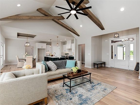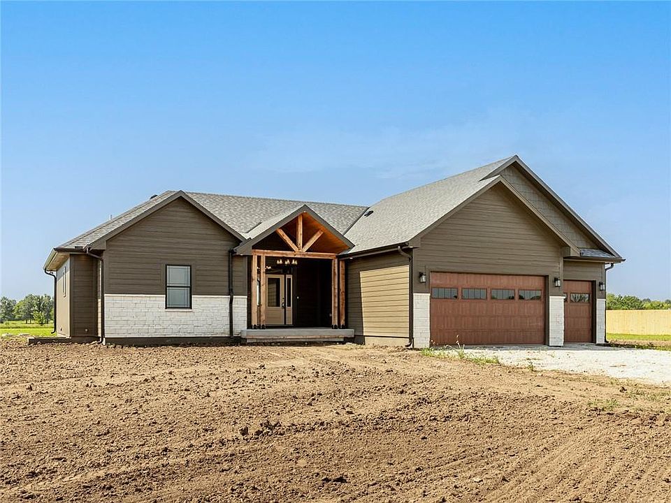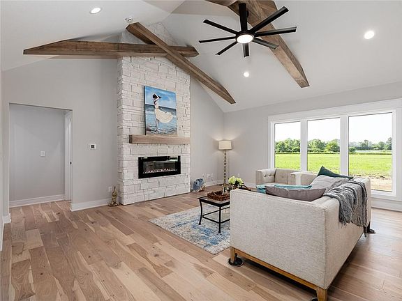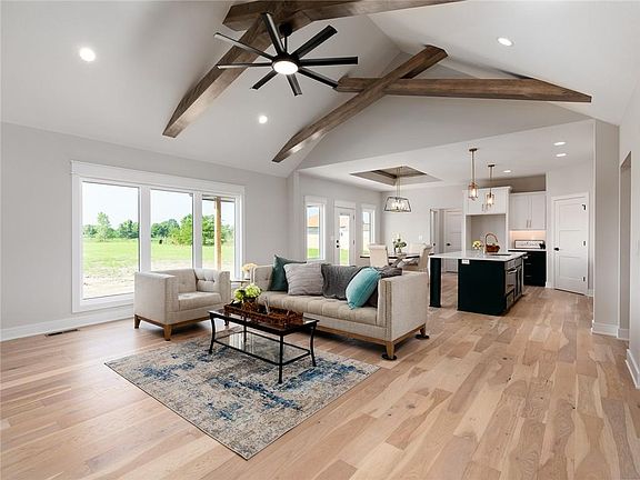 Home to be completed very soon! Escape those crazy high city taxes by moving to this country oasis! Located in Johnson County, MO. You'll love this Beautiful NEW Ranch home that backs to a 15 acre lake and sits on 5 acres! Lake rights/access and everyone that lives around the lake has private access. Peace and tranquility worth the short commute to Lee's Summit, Warrensburg, and KC Metro. It's a perfect opportunity to enjoy country life with great views of the lake and being able to fish! Great Curb Appeal! UPGRADES GALORE! Exposed scissor truss beams in vaulted living room! Kitchen with two-toned cabinets and high end Calacatta Prado Quartz with with brushed gold faucet and accents, upgraded engineered hardwoods floors, huge pantry with garage pass through door, & S/S appliances. Main floor Master with Beautiful Master bath, 66" soaker tub wrapped in wainscoting, dual head shower, huge walk-in closet, and adjoining laundry room. There is a 2nd bedroom/bathroom on the main. HUGE basement with Wet Bar, built in surround sound, and 2 other bedrooms/bathroom. You'll love the covered patio off the back overlooking the lake. Schedule a showing today! The Listing Agent is an owner/agent. The adjoining land is not for sale.