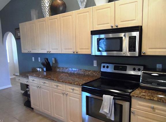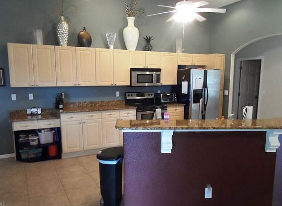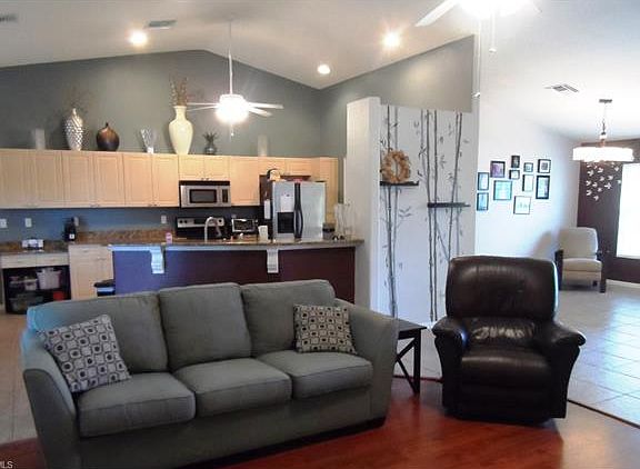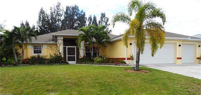 We have a winner... It's a Trifecta! A rare combination... An extra bedroom, an extra bathroom and an extra garage stall! Hurry for your opportunity to own this lovely four bedroom, three full bathroom, three car garage home in southwest Cape Coral. The heart of this home is the spacious gourmet kitchen with enough room for more than two cooks! Plenty of cabinet storage, beautiful granite counter tops, large breakfast bar, desk and eat in kitchen. The great room has cathedral ceilings and triple sliders to the large lanai overlooking an adorable backyard. A very light and bright home. Bring your marshmallows and gather around the cozy backyard patio and fire pit set in a very private and secluded backyard. This home is on city water and sewer with water assessments paid and sewer and irrigation assessments with an approximate balance of $6,900. Many extras: sprinkler system, new screen enclosure at the front door, walk in closets, inside laundry, new exterior paint, new gutters, fenced yard, hurricane shutters & more. Adorable home ready for a new family. Centrally located with convenient access to Veterans Parkway & Pine Island Road. Well maintained and move in ready home! Hurry!