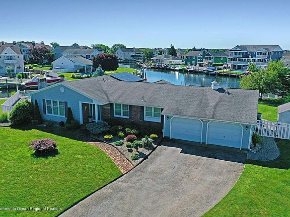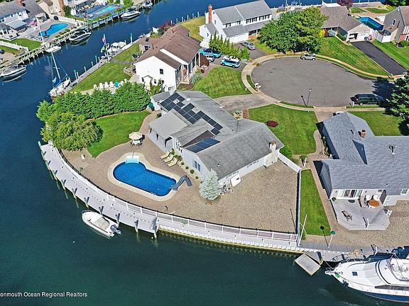 Paradise in Point Pleasant! Waterfront living at its best. This 3 BR 2.5 bathroom ranch home has a 2 car garage and sits at the end of a quiet dead end street. The home features an open floor plan with an updated kitchen, stainless steel appliances, recessed lights, and hardwood floors. The gorgeous kitchen's large center island make it a great congregating area a focal point of the home. The family room has a large brick fireplace with built ins, which adds a cozy touch to the home. The resort like backyard has a large canopy covered deck overlooking the heated inground salt water pool. The over 180 ft of waterfront wraps around the yard to give you amazing views from every part of the property & home. Over 180 ft of waterfront with vinyl bulkhead is so rare to come by - don't miss out!