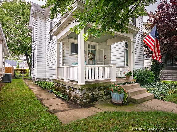 Twentieth century home features elements of both the Queen Anne & Craftsman style and offers over 2000 square feet of living space, including 4 bedrooms and 2 full bathrooms. A front porch with square columns and a dentillated cornice provides visual interest to the front elevation, as does an oriel window on the projecting front gable. The windows have been replaced with vinyl units that retain the original openings and one-over-one pane configuration. Updated electrical, central air, and a newer roof and gutters are among the other updates. The original front door opens into an inviting foyer. Original, natural finish woodwork and tall ceilings (10’-first floor, 9’-upstairs) are throughout the home. Most of the original flooring remains, with a different design in each room. In the entry, the eye-catching design features diamond-shaped inlays between the parquet squares with a diamond border. The focal point of the front parlor is a corner fireplace, now converted to gas, clad in tile believed to be Rookwood. Pocket doors open to the dining room with a bay window. The kitchen has been updated but retains its period character and offers plenty of cabinet space, an island, and a large pantry. One bedroom is located on the first floor, as is a full bathroom with a built-in linen closet. A graceful oak staircase with square newel posts and unusual tapered balusters leads upstairs. The 2nd floor bathroom has a clawfoot tub, beadboard, wainscoting and lots of natural light.