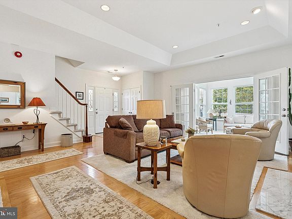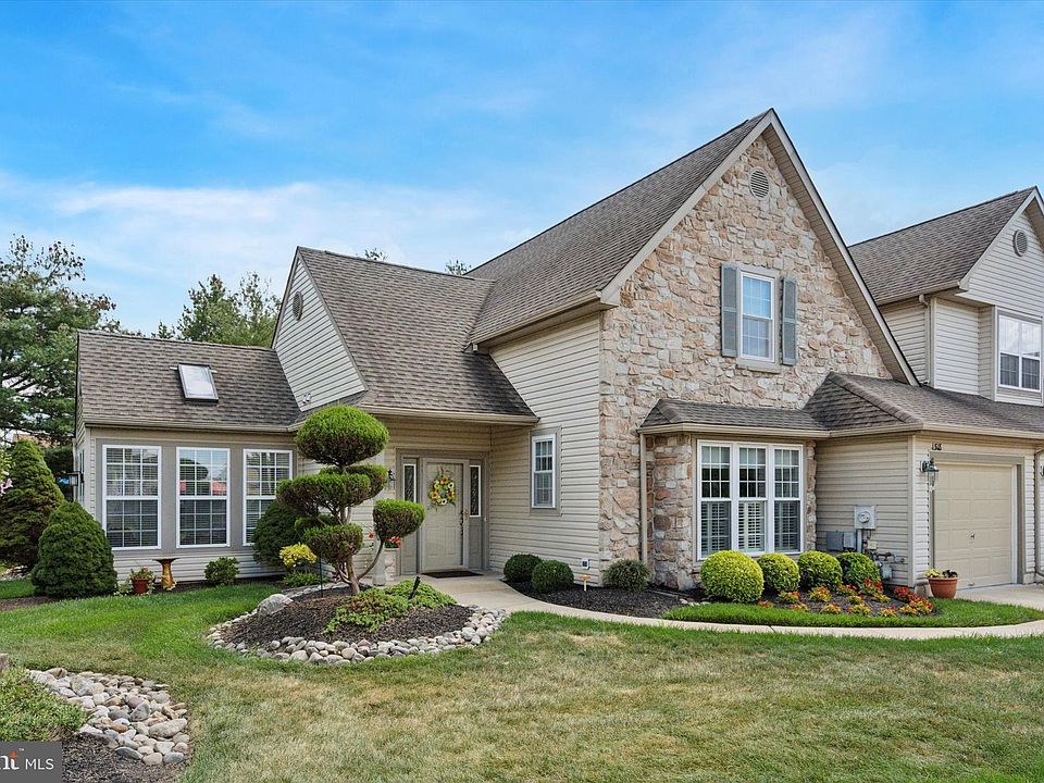 Tucked away on the back edge of Yorktown, a 55+ community in Jamison (Warwick Township), this end-unit townhome offers a maintenance-free lifestyle and a great location within central Bucks County. Built in 2000, this lovingly maintained home has approximately 2,300 SF of living space on two levels, 3 bedrooms, 3 full bathrooms, and a 1 car garage. From the driveway, a short walkway wraps around the left side of the home to a welcoming covered front entrance. Upon entering the home, you immediately notice the open floor plan with 9’ coffered ceilings, highlighted by beautiful marble surround gas fireplace with built-in shelving on either side. The combination living room/dining room has hardwood flooring throughout, with carpet inlays, creates the perfect space for entertaining friends and family on any occasion. From the living room, French double doors take you into the sunroom, a unique space not found in many other homes within the community. The sunroom is a comfortable space featuring vaulted ceilings, skylights, and three walls of windows bringing in lots of natural light throughout the day. The eat-in kitchen is adjacent to the dining room and is nothing short of functional. A white beadboard with chair rail and white cabinetry creates a classic appeal, while the new stainless appliances and tile backsplash provides a modern touch. The primary bedroom is on the main living level, is generously sized with a coffered ceiling, offering two walk-in closets, and a full bathroom. The master bathroom features a new double sink vanity and stall shower with glass doors, as well as direct access to a large laundry room. Another full bedroom, currently used as a den, and a full bath completes the main living level. The entrance door and closet in this room were removed to open the space but can easily be converted back to a private bedroom. Upstairs is the 3rd bedroom and 3rd full bathroom, as well as a large utility room for additional storage. For outdoor living, there is a paver patio surrounded by beautifully landscaped grounds, backing to a tree lined edge of the community. Other notable features of this home include public water and sewer, central A/C, natural gas forced air heat, and an alarm system. Amenities within the community include a clubhouse with fitness center, as well as an event space. This home is conveniently located within a short drive to the Borough of Doylestown, Lahaska, and Warrington, and has easy access in and out of the area via Routes 263, 313, 611 and 202.