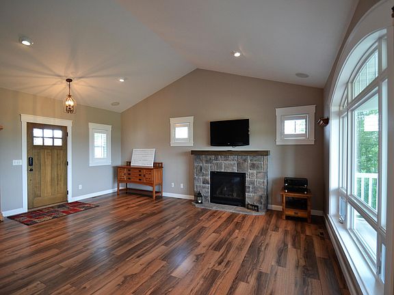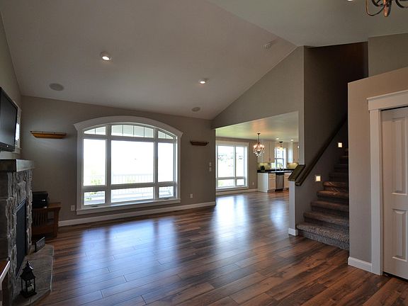 Beautiful Quality Craftsman style two-story home with 5 bedrooms and 4 bathrooms and a triple garage. From the moment you arrive you will see the unique features that define this home with great curb appeal including varied roof lines and dormer style windows, columned front entry covered porch and mission style front door. As you enter you will view unique window styles with wide white molding trim and wide open views to the north through the gorgeous large living room window. The living room includes a stone front natural gas fireplace open to the dining room where you can access the covered maintenance free deck along with its wide open views. The kitchen cabinets are white with a contrasting wood island and appliances are stainless. The main floor also includes an office, bathroom and laundry room. The upper level has a master suite with vaulted ceilings in the master bedroom, double sinks and walk-in closet, plus two more sizable bedrooms and a full bathroom. The white two-panel style doors throughout add to the craftsman look. The home also includes high quality shutter box window coverings. The basement is bright with plenty of natural light, includes a family room with patio doors for walkout, two additional bedrooms with ground level windows, a full bathroom, a storage room and a mechanical room with a dual zoned HVAC system. Speaker system throughout the home and surround sound in living room and family room. Garage is finished, has hot/cold water, floor drain and hookups for a heater. Shingles new spring 2020. This top-notch home is ready for its new owner!