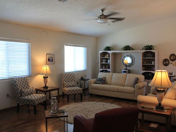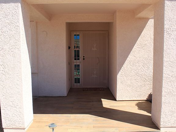 This homeowner has taken pride in doing all of the work for you! Newer windows & blinds throughout, quality laminate flooring throughout, newer furnace, A/C & water heater (all 2 yrs ago) and an EasyWater water softener. In the kitchen, enjoy the Quartz countertops, newer appliances (3 yrs ago) and an informal eating area. The master bedroom walk-in closet has built-ins and uest room is completely private. There is central vacuum, ceiling fans in most rooms, and an office area near the laundry room. The water fountain on the back patio can be enjoyed from inside or while relaxing on the patio. A peek-a-boo mtn view tops everything off for a perfect package. Conveniently located between 2 GVR Rec Centers and close to restaurants and golf courses. Some furniture avail. separate bill of sale.