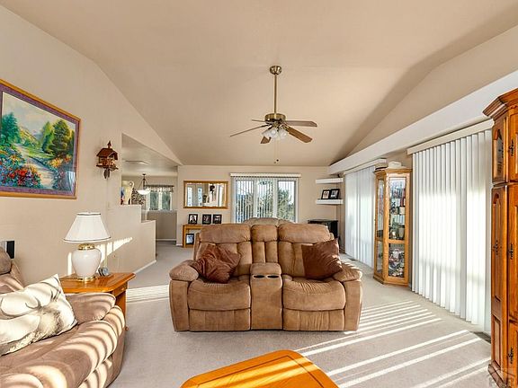 On a corner lot in the Pueblo West acreage area, this 4 bed 2 bath 3 car garage sits on 1.6 acres. Great layout for the family. Vaulted ceiling in the living room with lots of natural light. Off the living room, step out to the covered deck and enjoy the day. Pellet stoves in the living room and basement. Light and bright open kitchen with spacious eating area. Large main bedroom with walk-in closet. Easy access to the courtyard off the main bedroom to soak in the Jacuzzi hot tub. Fully finshed basement includes the family room set up for entertaining including theater seating and large screen TV. Pool table in the game room is negotiable. One of the basement bedrooms is fully furnished with bed, head board, night stands and dressers. The storage room in the basement includes the heavy duty shelving, cabinet and freezer. The oversized 3 car garage, 42'x23', is a nice bonus. The owner has raised exotic birds and has an enclosed area, 90x90, including a 12x24 barn. Lots of room on the property for RV/boat storage.