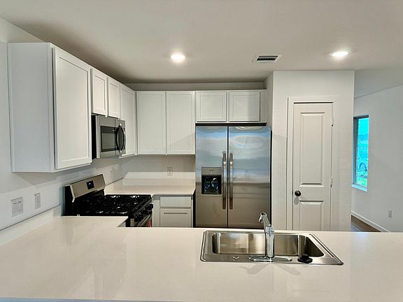 A brand-new, never-lived-in single-story home located in the Windrose Green neighborhood. This beautiful 4-bedroom, 2-bathroom home features a classic layout that seamlessly combines luxury and functionality. The house includes a 2-car garage and offers a well-designed layout with all essential amenities on a single level. As you step inside, you'll find a welcoming foyer that leads to an open-concept living area comprising the kitchen, dining room, and family room, with easy access to the backyard. The owner's suite features a private en-suite bathroom and a spacious walk-in closet, while three additional bedrooms provide peaceful retreats for residents and guests. The house features lofty 8-foot ceilings, creating a spacious and airy atmosphere throughout. The kitchen is equipped with high-end stainless steel appliances and complemented by sleek luxury vinyl plank (LVP) flooring. The open-concept design connects the kitchen to the living space, making it an ideal setting for everyday living and entertaining. Additionally, the house comes with a brand-new refrigerator, washer, and dryer. Windrose Green is a new master-planned community in Angleton, TX, offering amenities such as a swimming pool, greenbelt, clubhouse, playground, recreation center, splash pad, and lake. Residents are close to major retailers, local businesses, recreation areas, sports fields, and schools. Don't miss the chance to upgrade your living experience. Schedule a viewing today and experience a home where luxury, functionality, and style converge seamlessly. Welcome to a residence that sets the standard for refined living! Renters are responsible for all utility charges. The home has an inground sprinkler system, renters are responsible for the operation of the sprinkler system and maintaining the lawn, trees, and yard. Smoking is not allowed inside the home. Renters are required to follow the HOA Rules. The first month's rent is due at signing. Small pets (up to 20 pounds) are allowed.