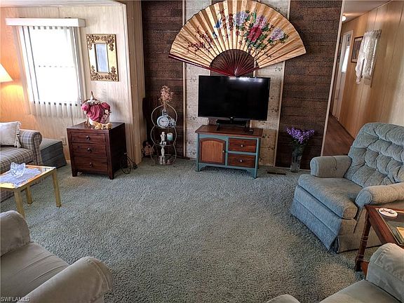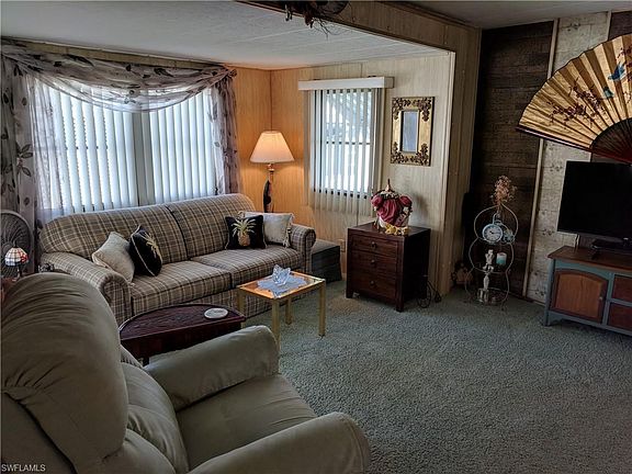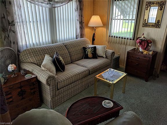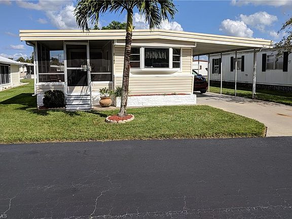 If you are looking for the perfect seasonal or retirement getaway, you've found it! This immaculate, well kept, move in ready home is being offered TURNKEY! Everything you need to enjoy the Florida lifestyle! The home offers two bedrooms, one bath with an open living area that flows well into the kitchen. Outside you will find a screened porch to enjoy your morning coffee as you enjoy the peace and quiet of this extremely, well maintained community. This home is literally steps to the clubhouse and community pool! Lakes Park is located within walking distance from this community. It's only 20 minutes to beautiful Fort Myers Beach! Close to restaurants, shopping malls and the airport! The A/C unit was replaced in 2017! The attached carport will easily fit two vehicles. There is also a large storage unit. The community offers a large community pool, shuffleboard and a nice clubhouse with a full kitchen! This community is very active and offers many social events throughout the year. Call today to schedule your showing! Homes in this community don't last long!