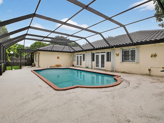 Stunning 5-Bedroom Home on a Peaceful Private Cul-de-Sac. This spacious home blends elegance, comfort, and functionality — perfect for family living and entertaining. Step inside to an open, light-filled layout featuring a separate living room, formal dining area, and an expansive Florida room that opens to the backyard oasis. The remodeled kitchen showcases sleek modern finishes. Throughout the home, plantation shutters and accordion hurricane shutters. Enjoy the best of Florida living outdoors with a screened-in pool, an oversized covered terrace with soaring ceilings, and a large patio surrounded by lush landscaping. The backyard also features a variety of fruit trees .Converted garage of, a circular driveway with generous parking, a new roof, and a large storage shed. With no HOA.