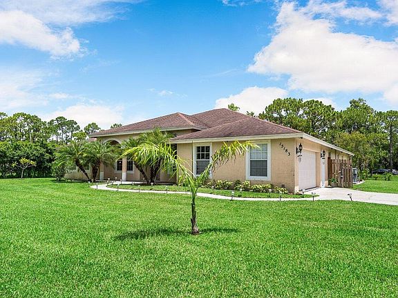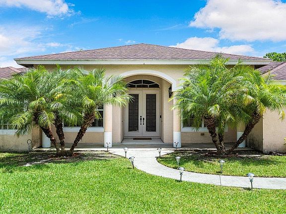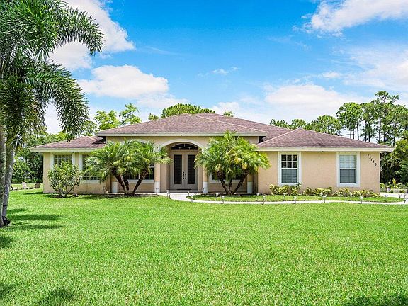 WELCOME HOME to serenity and country living at its best! This lovely true (4) bedroom, (3) full bath, (2) car garage home rests on a premium lot and features; a 1.15 acre lot with no pond, 75% fenced and just steps from a quite paved road. ENTERING the grand four column covered front patio brings you to the 8' double front doors and into; a 7' x 6' foyer, soaring 11' ceilings, spacious living areas offering an abundance of natural light and green space view from virtually every room, completely renovated kitchen boasting; a newer appliance package, 42'' cabinetry with braid, soft close drawers, glass doors with lighting, brick lay marble backsplash, beveled edge counters, large family bar, pantry and cozy dining nook with windows overlooking the lovely lanai. PASSING through you will CLICK