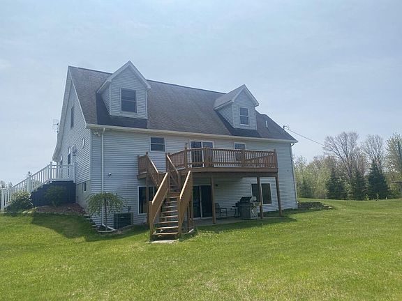 Breathtaking views will be all yours on this 3 bedroom, 4 bath cape cod style home that offers a full walk out lower level. Main floor features a main bedroom with its own bathroom. Home office, large living room, and also an additional full bath for guests. Kitchen dining and home office all face the back of the home to take in the view of the woods. Upstairs you will find 2 huge bedrooms, another full bath and landing area that could be used as a computer area or reading nook. Downstairs is a full walk out to the back yard and features a large laundry room, family room with bar and loads of space for both storage and extra living space. 2 car detached garage is extra deep plus offers a storage loft above. An extra bonus is a new pole barn plus a pond.