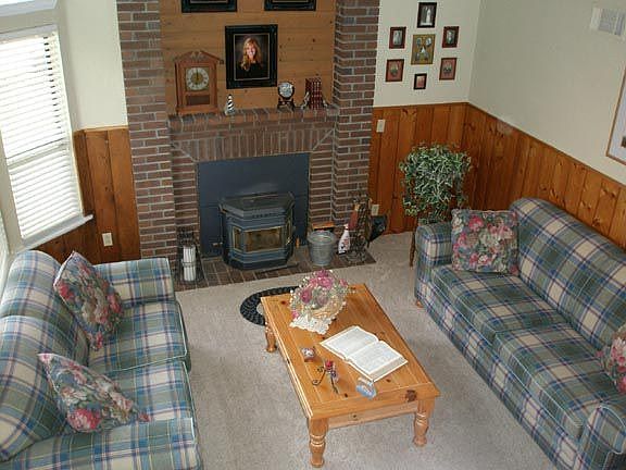 Custom home in Lake Elizabeth. Great location on culdesac street with lakeview. Living room has pellet stove, vaulted ceilings and tongue & groove wood wainscoting for a woodsy look. Majestic stairway leads to 2 bedrooms and loft area with closet which could be 3rd bedroom. Family room has slider door to backyard with built-in BBQ. Formal dining room features wet bar. Master bedroom has custom bathroom with spa tub. Victorian vanity with double sinks and skylights. Beautiful lakeview from 2