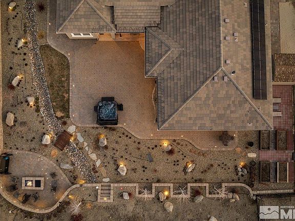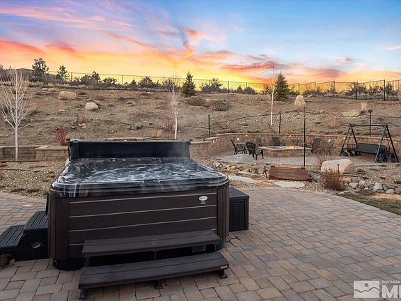 Pending but available for showings. Contact the listing agent to view this home, phone # below. Experience the epitome of luxury living at the prestigious Mt. Rose Estates. Nestled on nearly 2 acres of serene land, this property offers unparalleled privacy and a natural barrier from the elements, perfectly blending exclusivity and comfort. Exceptional Design: The thoughtfully designed single story floor plan centers around an expansive chef’s kitchen, a true culinary masterpiece with stainless steel, appliances, including double convection ovens, a 5-burner gas stove, a micro-bake convection microwave, walk in pantry and abundant counter and cabinet space. The kitchen seamlessly flows into an oversized family room with soaring ceilings, large windows, and a stunning stone-encased custom bronze hammered fireplace, and custom cabinets. Spacious Living Areas: Separate primary suite and bath with walk in shower, garden soaking tub and 2 vanities in addition to 3 generously sized bedrooms, plus a dedicated office complete with a Murphy bed, ensure ample space for family and guests. Modern Comforts: 3.5 beautifully appointed bathrooms, French oak hardwood flooring, and a recently remodeled family room elevate the home’s interior design. Entertainment Paradise: The outdoor spaces are a true retreat, featuring an expansive paver patio, a cozy gas fire pit, a practically new spa, and a covered dining area perfect for year-round gatherings. Custom landscaping with ambient lighting enhances the experience and there are fruit trees. Unmatched Convenience: A 4-car garage, trailer parking, and a large storage shed provide practicality without compromising style. Sustainable Living: Solar panels with battery storage allow the home to harness renewable energy, reducing electricity costs and the home’s environmental footprint. Prime Location: This luxurious estate is located moments from walking trails, gourmet dining, high-end shopping, and the Reno-Tahoe International Airport. Just a short drive to the pristine waters of Lake Tahoe, world-class skiing, snowmobiling, and countless outdoor adventures. With an extremely low HOA of just $83 per month, this home offers an extraordinary combination of sophistication, comfort, and value.