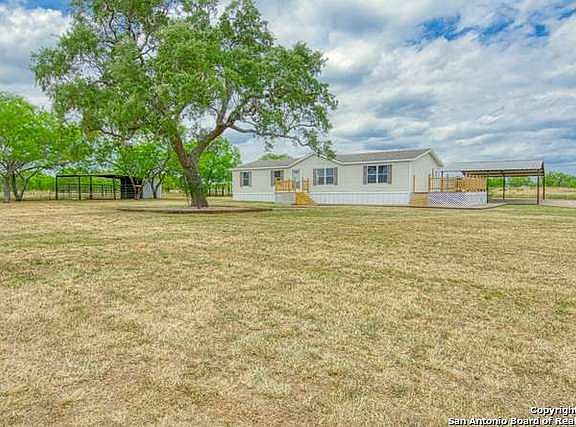 PEACEFUL COUNTRY! Well Maintained 3 Bedrm, 2 Bath home on Acre lot in St. Hedwig. Spacious Open Floor Plan with 2 Living areas & Nice size Kitchen. Over $35K in Property improvements to include newer 12 x 10 Storage building, added Front porch & Side entry deck, also added 25x40 Carport for three or more vehicles. Fresh gravel recently added to Driveway, has two additional Storage bldgs. & Horse stall area. Property is Fully Fenced with Entry gate. Within 20-25 minutes to Randolph AFB & Ft. Sam.