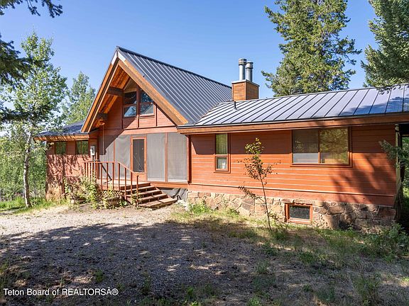 Charming cabin in the woods, on the north end of Jackson Hole. Bridger Teton National Forest and Grand Teton National Park are out the back door, as well as close proximity to several river options for fishing and recreation. The improvement has 2-bedrooms, 2-bathrooms, plus loft, with full kitchen, living room, deck and unfinished basement level. Grand Teton views are out the main windows to the west. This home has been a summer-use property for decades and it's turning over for the next family to add on to its history. The parcel is over 1.5 acres and has mature, natural landscaping. New metal roof. Year-around access. HOA and CCR's in place.