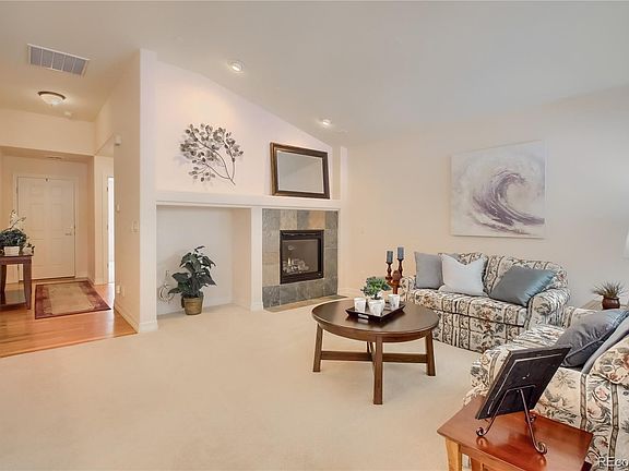 Stunning ranch style townhome backing to Heritage Todd Creek Gold Course! An exceptional floor plan featuring a large family room with fireplace this makes entertaining a breeze. Open kitchen with TONS of cherry cabinets and granite counters coupled with a bar height breakfast counter & pantry closet... this home just works. Dining area has plenty of space for a large table and hutch. Master bedroom has vaulted ceilings and an en-suite bath. There you get miles of counters, dual sinks, large shower and a MONSTER walk-in closet! The guest bedroom has a wall of windows and is a very inviting space. Guest bath is spacious with a cherry wood vanity and full tub/shower. All this and it's a nice space for guests facilities as well. If you want outdoor living - you will LOVE the covered back patio and maybe even more the upgraded patio with pergola for those summer evenings. Sitting on a premium golf lot you have to come feel how serene it is. All this and much more to discover.