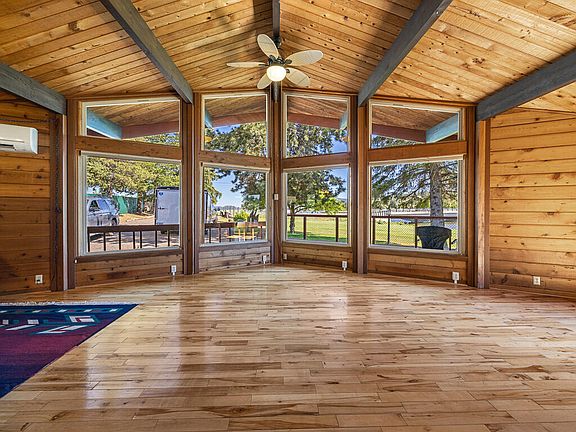 This one will go quick! It's the peaceful retreat you deserve, an all Cedar, 2 Bed, 1 Bath, made of large timbers stacked to the open-beam, vaulted ceilings, beautifully trimmed in Doug Fir molding. Set on .78 acre with 125' of private, direct access to Klamath River frontage, offering a daily parade of pelicans, ducks and geese. Built in 1975, this T&G timber 1092 sq ft home is a RARE find today. The quiet interior offers natural light, scenic views, and the charm of handsome wood walls. The exterior, a joyful experience of nature on the water or sitting on the deck under large and shady trees. Everyone will appreciate the condition, ready as your personal home, get-away retreat, or VRBO investment. It offers AC, certified woodstove, metal roof, polished wood floor, washer/dryer, brand new oven, underground sprinklers, an irrigation system covering lawn/pasture & 8x10' Tuff Shed to store Kayaks and bicycles. Truly, an amazing property. Minutes from Keno, OR.