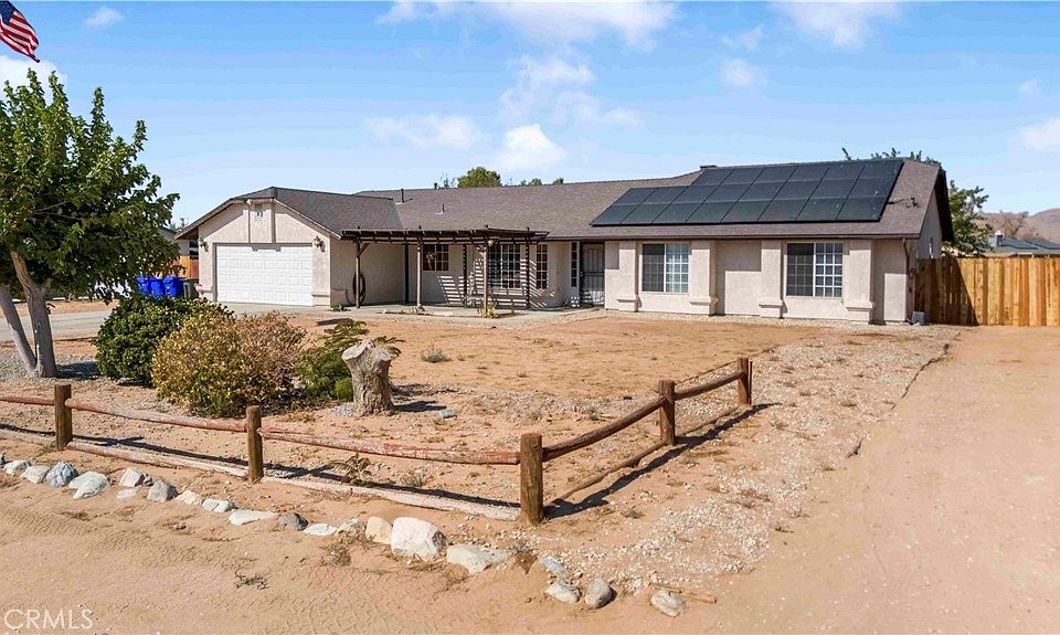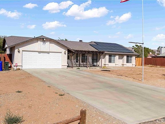 Wow! What a deal! Welcome to this beautifully upgraded, move-in ready single story home located in a quiet, well established neighborhood in Apple Valley. This spacious home offers 3 bedrooms, 2 bathrooms, and 1756 sq. ft. of living space, perfect for comfortable everyday living. Enjoy all new flooring throughout the entire home, fresh interior paint, and a brand new roof for peace of mind. Huge bonus is the energy efficient solar system to eliminate your monthly Edison bill. The inviting kitchen features ample cabinetry, a pantry, tile countertops, a breakfast bar, and a cozy dining nook. The family room includes a charming brick fireplace and opens to the dining area with sliding glass doors that lead to a covered patio, ideal for relaxing or entertaining. The large primary suite offers a double sink vanity, a soaking tub, separate shower, and a walk in closet. The home also features an indoor laundry room with a gas dryer hookup, an attached 2 car garage, RV parking, a fully fenced back yard, and a storage shed. Conveniently located near shopping centers, schools, parks, and restaurants. This is a must see home that offers comfort, convenience and style in one turnkey package now offered at an unbeatable discount!