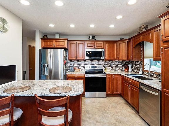 Cozy gas fireplaceWet barSurround soundRemodeled kitchen with graniteFully fenced yardGorgeous treed lot