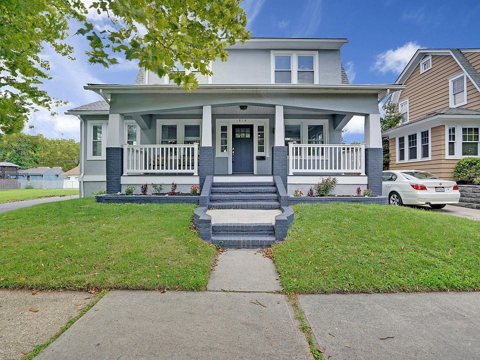 Stunning redesign transforms this classic Dutch Colonial on beautiful tree lined street. Expansive porch draws you in from the moment you arrive. Gourmet kitchen w/island, natural stone counters, built in wine fridge, SS farmhouse sink, breakfast area w/built in seating, spacious living w/wood burning FP, formal dining area & side enclosed sun, porch, laundry & bath complete the 1st floor. Split stairs takes you up to a dramatic en suite master bedroom w/WIC & gorgeous master bath w/lux shower, two add'l bedrooms + full bath complete yr 2nd floor. Walk up finished 3rd FL bonus space. Original refinished h/w flooring throughout. French sliders to back yard's new paver patio + 2 car garage. 2 Zone HVAC. Modern contemporary get away or full time home in one of Asbury's finer NW neighborhoods.