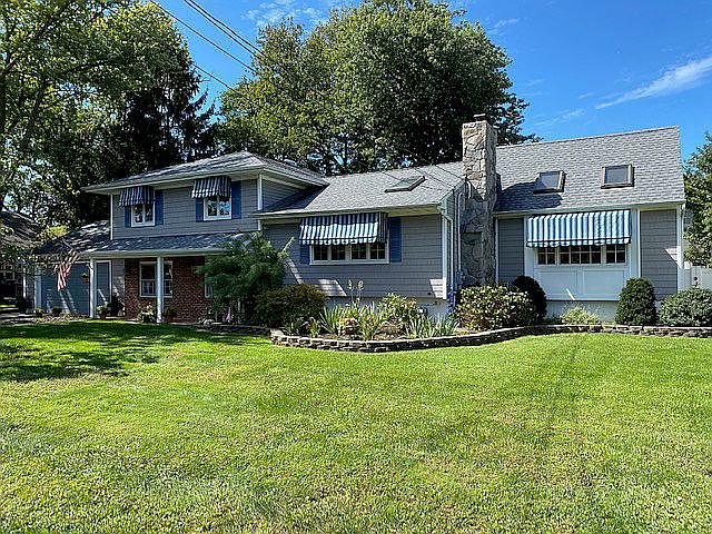 Charm and Beauty describes this Spacious 3 Bedroom 1.1.bath Split Level with many amenities! Features include: Entrance foyer with quarry tile floors and pantry. Den features a a cast iron franklin wood stove and a built in book shelf. The Family Living Room has Chapel ceiling (aprox.12ft clear) w 2 Skylights. Formal Dining Room with wood burning fireplace, Large eat-in Kitchen with a skylight and an attached dining table featuring stainless steel appliances! Basement with laundry room and work bench, attached 2 Car over sized Garage with work area. French Doors lead out to an Enclosed Porch that goes out to a fenced in private backyard with patio deck great for entertaining! Custom awnings for casement windows. Beautifully landscaped situated on a 100 x 100 lot.