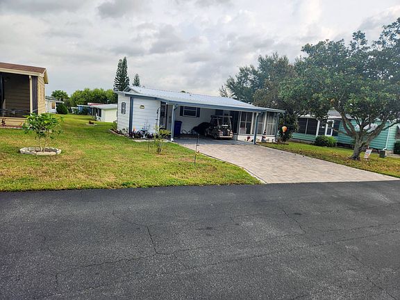 Dec 2024 New AC, 2022 Metal Roof, No Polybutylene Pipes, Double Stone paver driveway and carport. Vinyl Plank Flooring everywhere! Close to the Clubhouse! Large Florida room on the front of the home with vertical sliders. Home was updated 2022! Storage shed attached to the home. Located in the very desirable 55+ Foxwood Village, a Spectrum Community with 250+ Channels and 4 mbps high speed internet. Foxwood Village is an active 55 community that is pet friendly and offers great amenities like: Clubhouse with too many activities to mention, Dog Park, Exercise Room, Pickle Ball Court, Corn Hole, Putting Green, Firepit, Heated Pool, Tiki Huts, Rec Room, Hot Tub, Showers, Security Cameras, Social Clubs! Conveniently located near shopping, restaurants, medical facilities and just a short drive to popular Florida attractions! Homes are sold 'As Is' without warranties or guarantees by seller and/or Broker. All listing information is deemed reliable but not guaranteed and should be independently verified through personal inspection and/or by appropriate professionals. The buyer assumes full responsibility for obtaining all current rates of lot rent, fees, or pass-on costs associated with the community, park, or home from the community/park manager.
