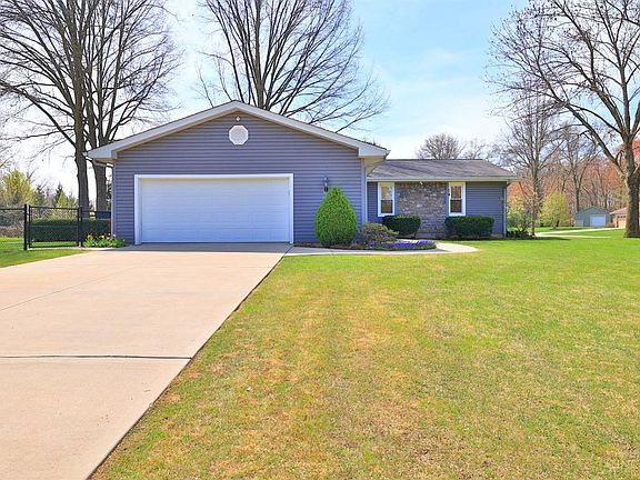 WOW, the curb appeal! Inviting front porch. Lavishly landscaped. Charming 3 bed, 2 bath ranch nestled on a beautiful .50 acre lot. Cul-de-sac street. Great room offers a gas fireplace & hardwood floors. New carpet in the bedrooms. Primary suite offers updated bath, walk-in shower, tile floor. Enjoy relaxing on your spacious deck w/ built-in seating. Fully fenced yard. Very well maintained. NO HOA. Partially finished lower level rec room. Water softener. Pull down attic storage. Roof 2012, Furnace Ac est. 2014. HWH-17.