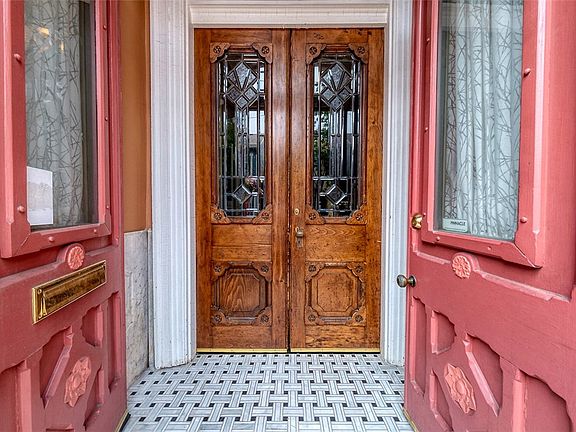 This classic Victorian, beautifully restored, in a prime block of the historic Mexican War Streets is half a block from a charming coffee shop and small public garden. A separate two story carriage house, a lovely backdrop for the private fenced brick patio, includes a one bedroom apartment and parking. Professional design and solid craftsmanship is on display throughout the home from the elegant sky lit staircase, restored original details and hardwood floors to the gourmet kitchen with high end appliances and custom designed two story rear porch. A large guest closet and elegant half bath have been skillfully tucked off the entrance hall. The bright interior is enhanced by recessed lighting, skylights and many windows, all insulated double pane. Of the 4 large bedrooms two are 2 room suites, one with its own private deck. An upstairs laundry. A well designed combination of gas forced air and hot water heat provide winter comfort; central air and mini-splits for cooling in summer.
