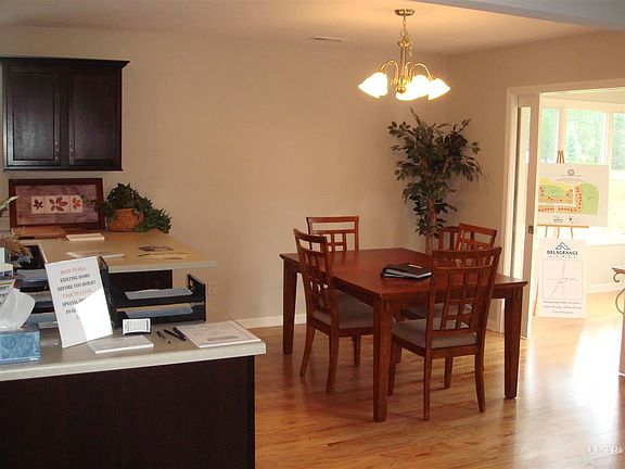 New Construction. Enjoy exterior maintenace free lifestyle living with yard maintenace and snow removal done by others. This home is a cozy cotttage style ranch that includes a beautiful Sunroom off the nook, 3 bedrooms, two full baths, nice rear patio, fireplace, hardwood floors in kitchen and nook, ceramic entry foyer, and kitchen appliances remain. This is a Delagrange Homes' model home being sold to construct a new model.