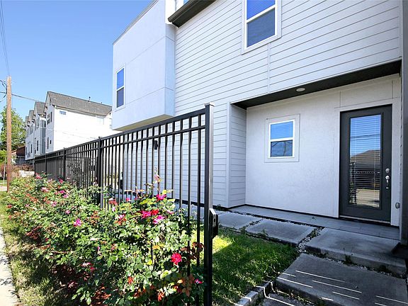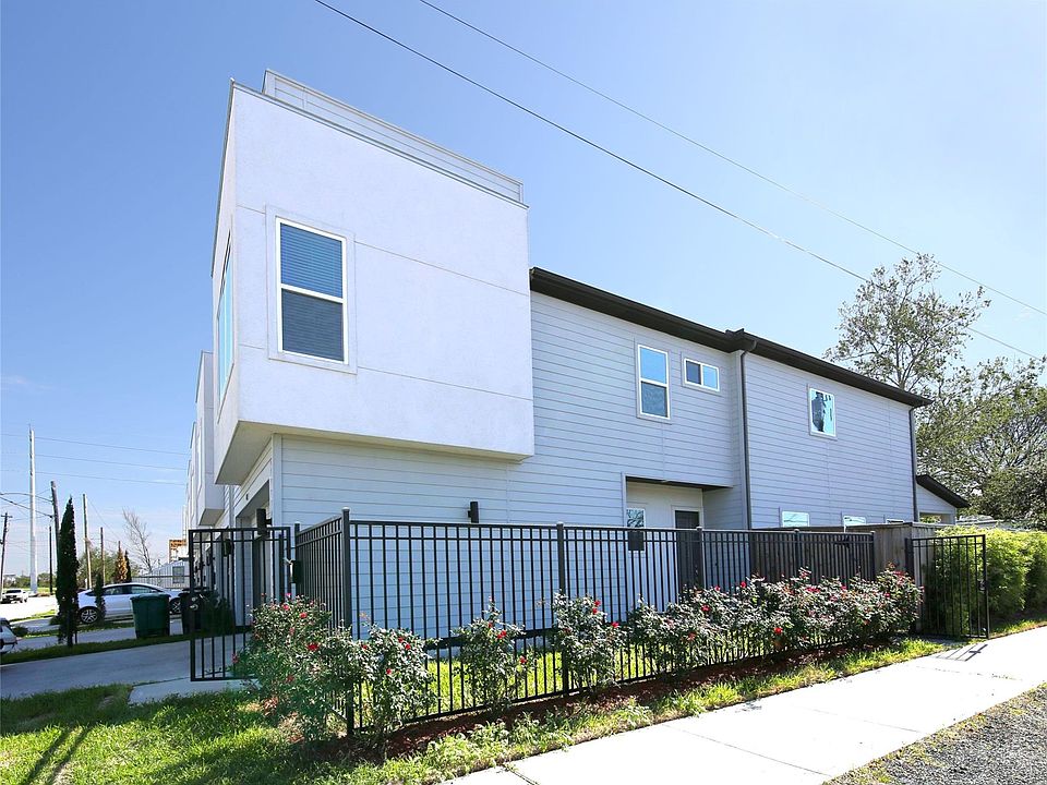 Contemporary/modern corner lot two-story with three bedrooms, three- and one-half bathrooms, living room on first floor, dining, kitchen open to living/dining, each bedroom with ensuite bath, high ceilings, hardwood floors, utility room on first floor, covered patio, attached garage, gated yard; immediate availability, $1,000 deposit, same day approval and lease signing available; thank you!