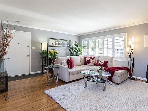 Located near gorgeous trails on the San Mateo lagoon, this two bedroom 1bath top floor end unit is freshly updated with gorgeous Lagoon Views. Enter the living room with beautiful wood floors, double pane windows, designer interior paint, and updated kitchen with formica counters, and new stainless steel appliances. Features an in-unit laundry, updated bath, central heat, two large bedrooms with carpet and closet organizers. 1 car deeded carport parking with additional storage and additional off-street parking. Low HOA dues. Community features swimming pools and exercise room. Easy access to commuter highways and centrally located to all San Mateo amenities including bus routes, parks, preschool, and shopping. Must See!
