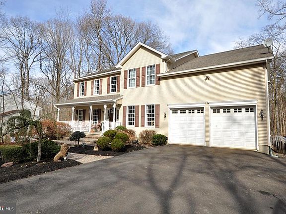 Stunning and Spacious Custom 5 Bedroom, 3.5 Bath Hainesport Home! With the privacy of a state park across the street and adjacent to backyard, the exterior features extensive hardscaping and landscaping with a walkway leading to a cozy front porch, while the .73 acreage backyard boasts a 12 x 24 Timberteck deck, Fire Pit, shed and play area. The interior of this beautiful property features over 3600 sq ft of living space in an ideal layout for entertaining and every day living. Hardwood Flooring and upgraded millwork throughout home. Living Room and Dining Room lead to Gourmet Kitchen with Custom Oversized Island with granite countertop as well as Maple Spice finished cabinetry with granite counters surrounding. Stainless steel appliances , Butler's Pantry with bar area and additional sink, and access through sliders to deck overlooking park like setting in backyard. There is a bedroom on the main level with a full bath, perfect for inlaws, guests or an au pair and a powder room near the family room with fireplace. Upstairs you will find the Master Bedroom adorned with a trey ceiling and an incredible walk in closet/dressing area. The private Master Bath features a Jacuzzi soaking tub , separate toilet/shower area and split vanities. Three additional generous sized bedrooms including one off the upstairs laundry/bonus room area which has plenty of room for a work or gaming station and a hall bathroom complete the upper level. The 1800 sq ft walkup basement is poured councrete with 9' high ceilings highlighted by a full wet bar, full bathroom rough in and fantastic space to utilize for media, billiards room or whatever your imagination creates. There is ample unfinished space for storage or home gym. Value adding extras in this home include central home wiring system in basement, Family room wired for home theater, speakers in kitchen and living room, home wired for security system, cable and tv in every bedroom, living room, and Family room, newer Hot Water He