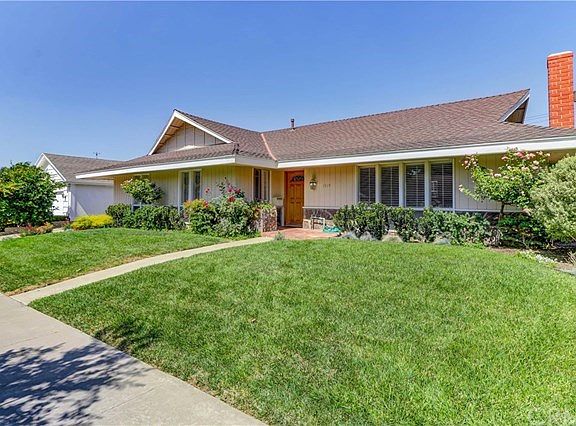 Prime, single story home on cul-de-sac in an excellent location. Tiled entry opens to the spacious living room featuring built-in shelving and a romantic gas fireplace. A dramatic, vaulted wooden ceiling and distressed wood flooring is featured in the family and dining room. The impressively remodeled gourmet kitchen has it all!! Center island gas cooktop with breakfast bar, separate eating nook overlooking the grounds, built-in refrigerator, Decor oven, microwave, wine refrig, handsome wooden cabinets, walk-in pantry and built-in desk. The front loading washer and dryer are included in the separate laundry room. Guest 1/2 bath conveniently opens to backyard. Spacious master bedroom with mirrored wardrobe doors opens to remodeled bathroom with dual sinks, granite counter and tiled shower. 2nd & 3rd bedroom both have mirrored closet doors and share a Jack-n-Jill full bathroom. 4th bedroom is convenient as an office. Huge backyard is perfect for entertaining, kids, pets and gardening. Additional amenities include: tankless water heater, comp. shingle roof, central heat & air. Convenient to shopping and freeways. Prestigious Villa Park High School.