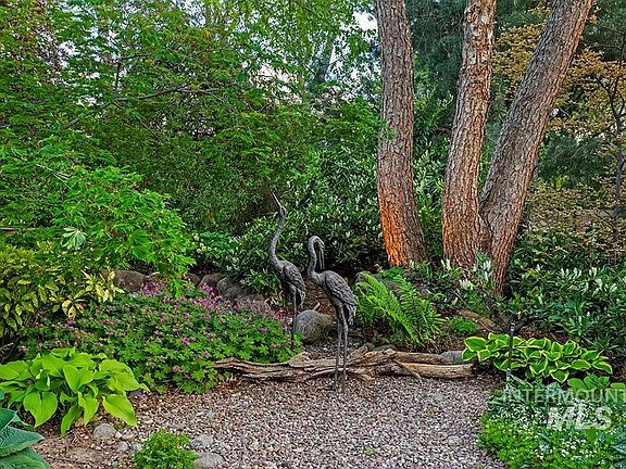 A spectacular backyard oasis nestled along the Boise River & Greenbelt! Tucked privately away in a peaceful enclave of Boise’s East End, set on a quiet cul-de-sac & surrounded by mature trees, exquisite gardens & lush landscaping. The backyard & its extensive patios & stone pathways feel like a secret garden under a canopy of leaves. It is a wonderfully serene setting meant for relaxation & reflection, while providing the most delightful space to host & entertain. Stepping stones lead to miles of greenbelt paths & river access. Kayak, paddle, or fish this stretch of water, bike to popular restaurants, BSU & downtown. This incredible location puts the best of Boise living at your fingertips while feeling remarkably secluded. Home highlights include vaulted ceilings, scores of windows, skylights & abundant natural light. Primary suite features balcony, en-suite bath & large walk-in closet. Main level guest suite, den & full bath. Charming upstairs office/loft. Grand & open living spaces for entertaining!