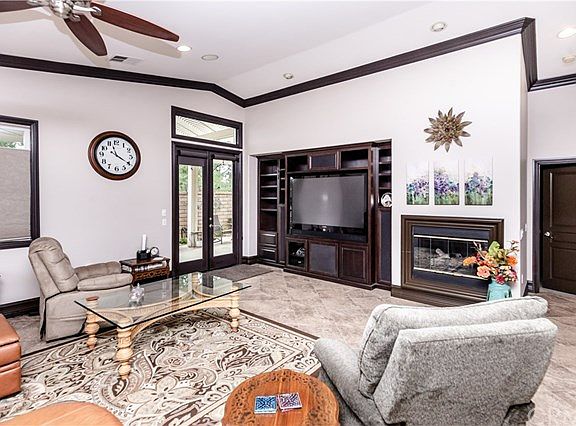 Stunning corner lot property located in the renowned Heritage III in the 55+ Four Seasons Community in Beaumont. Features 2 bedrooms plus office, 2 bathrooms, separate laundry room, and 2,102 square feet of open space. Upgrades include tile flooring, decorative lighting, ceiling fans, crown molding throughout home, and fireplace both in living room and master bedroom. Plenty of dark cabinets in the kitchen, island with seating area, and stainless steel appliances. Living room has built-in entertainment center with additional storage. Master bedroom includes its own fireplace, french doors leading to backyard, walk in closet with custom shelving, vanity, plus separate bathtub and shower for preference.Amazing backyard with patio area, built in barbecue, fire pit, and water feature..perfect for entertaining. HOA community amenities feature Bistro, movie theatre room, billiard, swimming pools and much more. Conveniently located near shopping, dining, Morongo Casino, Cabazon Outlet, and just a short drive to Palm Springs!
