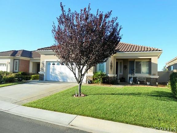 GREAT GOLF COURSE VIEWS from this beautiful ???????Trillion??????? model in the 55+ community of Solera! This home has it all! Plantation shutters and ceramic tile throughout the home, except the master bedroom. Ceiling fans and designer lighting in most rooms. Gourmet kitchen with corian countertops. Energy saving dual-paned windows. Fireplace in the living room. The large landscaped back yard is perfect for entertaining and even has room for a pool. Enjoy the many activities at the club house, including an indoor walking track, fitness center, pool, spa and much more. This gated community, with 24-hour security, is close to freeways, outlet shopping, the Morongo casino, Palm Springs and many golf courses.