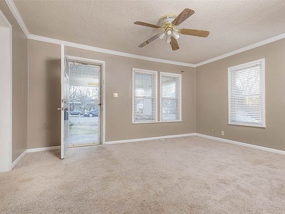 - LIVING ROOM DESC: Crown Mold, Smooth Ceiling, Window Cov, Ceiling Fan