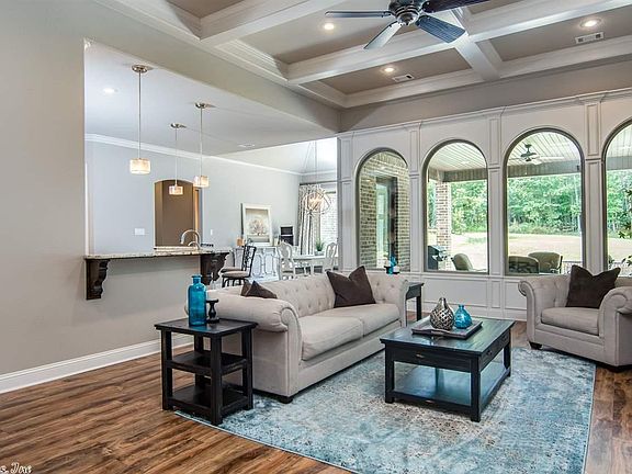 The stunning living room has trey ceilings, wood floors & great large windows. The spectacular kitchen is light & bright w granite counter tops, charming cabinets, breakfast bar, built in ovens & gas cooktop. The dining area is right off the kitchen w large windows. The master bedrooms has a trey ceiling with large windows & access to the back patio. Master bath with an XL bath tub, shower, his & her vanity an extra large walk-in closet that has it's own washer and dryer hookups.Extra office & Theatre room.
