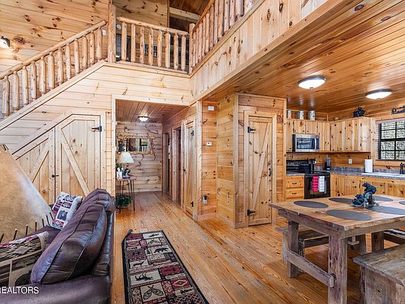 Indulge in the allure of this stunning cabin, strategically positioned between Pigeon Forge and Gatlinburg within a secure gated log cabin community - a prime locale for both serene living and lucrative investment. The property's expansive lots not only guarantee privacy but also provide an abundance of parking, making it an enticing option for short-term rentals and a savvy investment opportunity. This fully furnished luxury cabin beckons with its covered wrap-around porch, offering an inviting space to revel in the all-wood interior or soak in the private hot tub. A spacious yard adds versatility, making it perfect for both leisure and outdoor activities. The main floor boasts two bedrooms and two baths for optimal comfort, while the upper level features an additional bedroom and bath, accompanied by a generous loft/game room - an ideal setup for entertaining guests or maximizing rental potential. Whether you're envisioning this property as your dream home or a lucrative investment, act now to secure your piece of Smoky Mountain paradise. Explore this unique opportunity and unlock the potential of owning a luxury cabin that offers both serenity and smart investment potential.