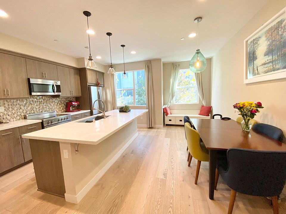Welcome to your luxury sanctuary in this modern 3B 3.5BR townhome with a light, bright and open floor plan! Spanning over 3 floors with a gorgeous green courtyard, this easy-flow home provides the perfect COVID work from home lifestyle. The floorplan boasts engineered hardwood throughout and high quality appliances in a beautiful chef's kitchen. Solar panels provide clean power and reduce your electricity bill! Upper levels have a sunshine-filled master bedroom with en-suite marble-tiled bathroom with his and hers sinks, a large closet, a laundry space and a guest room with a full bath. The middle floor streams morning sunshine over the kitchen island, and flows into a powder room and spacious living room. The lowest floor has a one car garage with built-in storage space, and an office or guest room with a walk-in-closet and full bath. The bottom room also leads into the tranquil garden with raised planters blooming with tomatoes and snow peas. In spring, huge blooms of purple wisteria hang from the wide pergola, making this beautiful space an absolute showstopper. A swinging egg chair and red wood benches finish the space to provide indoor and outdoor living. We're doing open houses Saturday (Nov 15) and Sunday (Nov 16) morning. Please reach out on Zillow to schedule a showing! Rent: $3995 per month Security deposit: $3995 Utilities paid by tenant Small dogs and cats are allowed on a case-by-case basis. Pet deposit is $250 per pet. No smoking allowed.