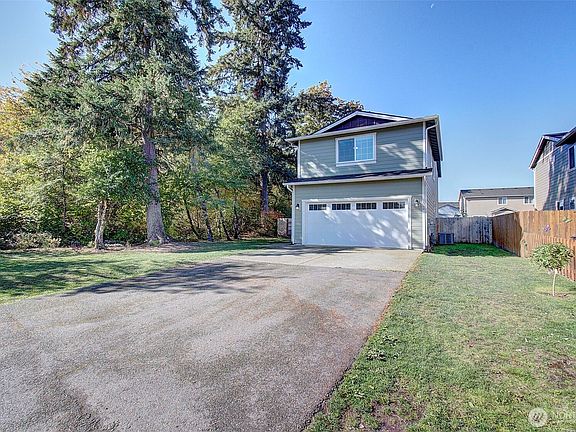 Tucked away on a quiet dead-end street, this 4-bedroom, 2.5-bath home built in 2019 feels like new with fresh interior paint. The open-concept layout features a spacious kitchen with granite counters and stainless appliances that flow into a cozy living area. Walk in pantry and storage. All appliances stay including w/d. Upstairs includes all four bedrooms, with a generous primary suite and private bath. Enjoy year-round comfort with a heat pump and A/C. Outside, the fenced yard offers a 10x12 shed with loft and peaceful greenbelt views. RV outlet (30 amp) included. Located just 16 miles from Olympia and steps from the Tenino-Yelm Trail, this move-in-ready home blends small-town charm with everyday convenience!