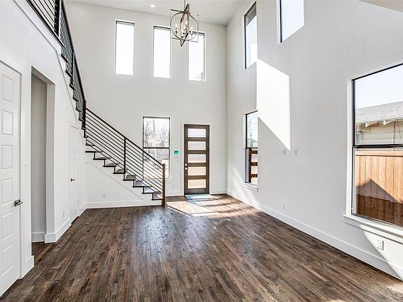 Beautiful 4BR, 2.5BA, 2LA contemporary 2021 built home with refined design. Enter through spacious, bright LR featuring soaring 20' ceilings, hardwoods. Kit with ceiling height custom glass front lit cabinets, waterfall island & pantry. Downstairs Owners Suite with 10' ceilings, spacious master bath & oversized shower. Ascend the elegant staircase & explore the three spacious additional BR; 17x12 flex space that can be used for an office, gym, study, living area. Open 18x7 landing area can be used as study, third living area. Located on a quiet one block street, close to Trinity Groves, Bishop Arts, planned TGroves Megatel Lagoon Development & Dallas' first Mass Timber Office Building at Herbert & Singleton. 2021-04-01