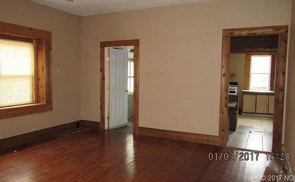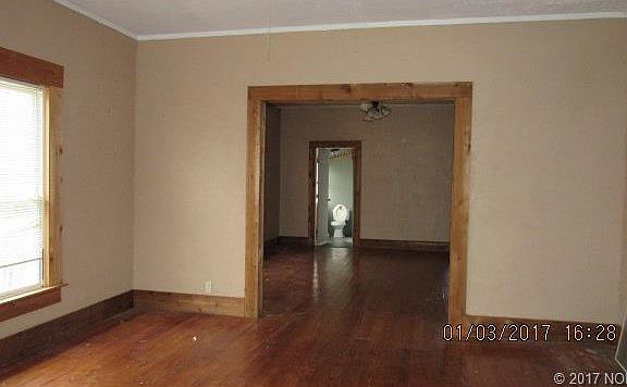 Perfect starter home just needs some TLC. Nice hardwood floors, pullman bath between bedrooms. large back deck and covered front porch. Has large basement/storm shelter area access in laundry room