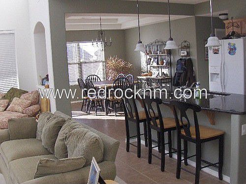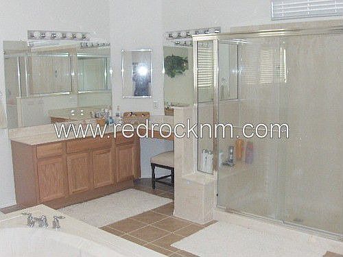 Beautiful home in hillside community close to Star Center, HP, CNM Rio Rancho and UNM Sandoval HospitalGreat room with high ceilings and fireplaceLarge eat-in kitchenGranite countertopsKitchen island with sink and dishwasherSeparate dining roomDownstairs large master bedroom and master bath with separate tub and shower and built in vanity3 BR + 2 BTH + Loft upstairsUpstairs balcony3 car garage