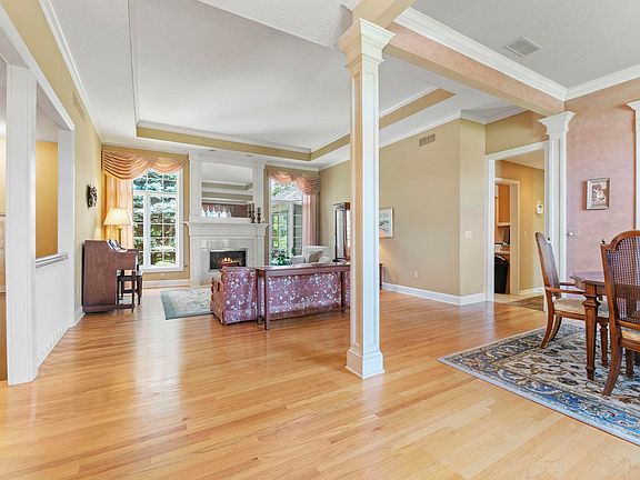Welcome to this beautiful Woodland Lake ranch home on a finished daylight basement. The graceful entrance draws you in with hardwood floors, 10' ceilings, a sitting room with a trey ceiling with crown molding accents, and a gas log fireplace. Uniquely designed for practicality and architectural appeal, there are 8 rooms on the main level with 2336 SF, and just under 1000 SF below ground. The large kitchen with center island has corian countertops, a new gas oven/range and sits adjacent to the breakfast nook and family room sharing a 3-way fireplace. Just outside is a gorgeous patio space, adorned with a koi pond and professionally landscaped yard. The sizeable laundry room has a large storage closet, cabinets and built-in ironing board. The Master suite provides 17x13 bedroom, vaulted ceiling, double sink vanity, and a walk-in closet. Completing the main level is the office/den with glass french doors and built-in bookcase. Thoughtful design on the lot allows for multiple daylight windows in the lower level, where there is a 18x14 bedroom, a full bathroom, and 28x18 recreation room, including a wet bar. Don't miss the features of the 3 car garage complete with a storage closet, workbench, floor drains, and service door to the backyard. Woodland Lake neighborhood has an association pool, and sidewalks that meander past the ponds and woods of the area. The convenient location near hospitals, schools, restaurants, shopping and highway access simply cannot be beat!