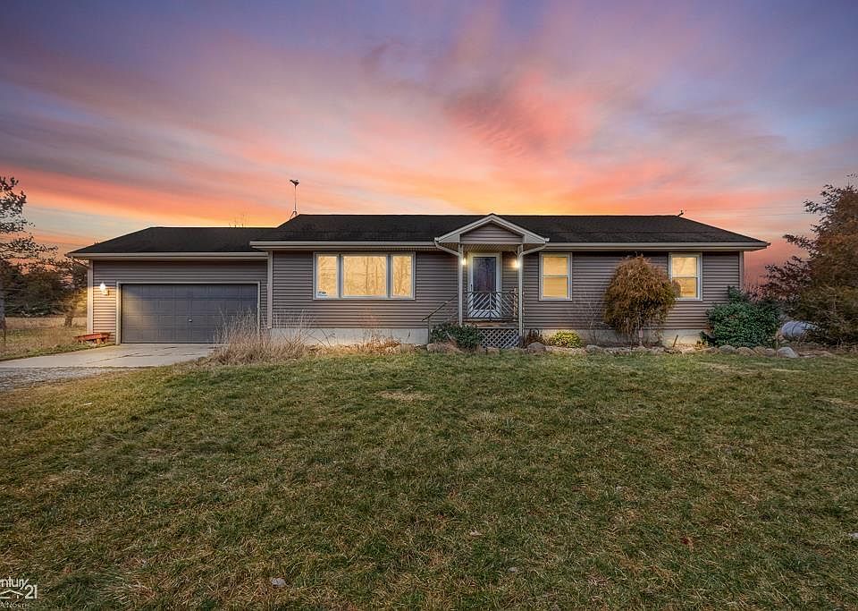 Country living at it's finest! Beautiful ranch style home featuring 3 bedrooms, 2 full baths, spacious living room, oak kitchen with breakfast nook, newer laminate flooring throughout (no carpeting), full basement, 2 car attached garage, additional 32x32 pole barn for all your toys. Situated on a huge 1.38 acre lot on a quiet country road.