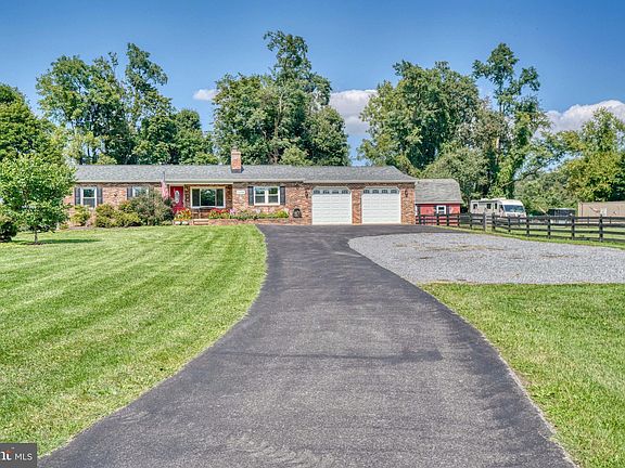 Sitting within the Howard County line, welcome to 15190 Frederick Road of Woodbine. This large rancher has 5 bedrooms, 3 full baths, 2 fireplaces (1 wood, 1 gas), attached and oversized 2 car garage (with gas heat and pull downstairs to attic space), and a fully finished basement (newly carpeted). The main level has 3 bedrooms and 2 full baths, an eat-in kitchen with breakfast bar and dining area. The living room is anchored with a wood burning fireplace (recently redone with warranty) and there’s also a family room on this level. The basement (with separate entrance) has wide-open space with a gas fireplace, in addition to 2 more bedrooms, a full bath and a large laundry room with great storage. This could easily be made into an “in-law suite”. There’s been several updates to include a new roof (lifetime warranty), siding, gutters, shutters, brick work, bath remodels, carpet, wood floor refinishing, exterior doors, windows, smart lock hardware, well & septic pump, French drain in field, exterior lighting, full house security & more! (See list in agent docs on listing) The lot is just over 2 acres which allows for great space for the additional detached garage/barn with loft, workshop, top loading door & electric. There’s also a 2-stall barn with 300 bale hay loft with steps, top loading door, & electric. In the same area there’s an electrical hook up for RVs. Off to the right side of the lot, there’s a large, newly fenced in section with 4-rail fencing with wire overlay that includes 2 large locking cattle gates. The owners have a green thumb! No doubt you saw the gorgeous banana trees at the beginning of the 1200 sq ft asphalt driveway (recently sealed) as you pull in. The owners also added large brick planters at the front of the house for year-round foliage and seasonal blooms. The 30 recently planted established trees (18 are arborvitae trees) run along the property as well as a creek, a small fishpond with picnic area with electric, pump, and LED lighting. On the back left side of the lot is even a grape arbor with thriving concord grapes! This property backs up to a private landscaping company which makes for an incredible backdrop! Call your Realtor to book this showing for you so that you can start making plans to make this your own!